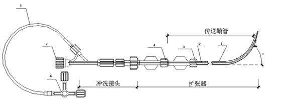 1.擴張器導管;2.傳送鞘管導管;3.傳送鞘管座;4.擴張器座;5.延長管;6.三通閥;7.止血閥